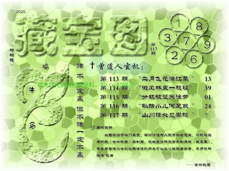 121期藏寶圖新:未知太保李公谁 老:起犯春霜壹泾寒 禁:马 禁:3尾 玄機字:《跃》