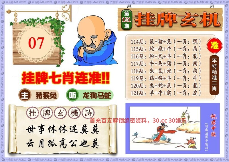 121期无字天书:财神送来猴和猪,跟牛胜定不后悔。羊20